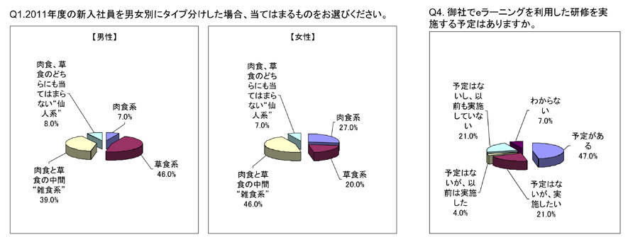 【新入社員に関するアンケート結果】2011年入社の草食系男子&雑食系女子には『社会人の基礎』を学ばせたい。
