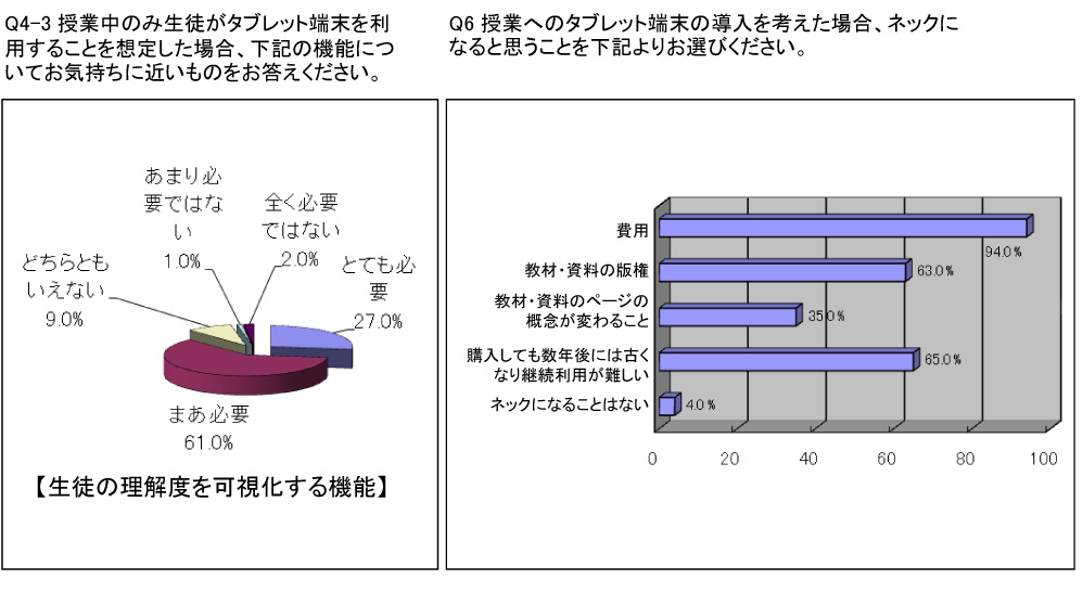 【タブレット端末の授業利用に関するアンケート結果】機能はWebサイト閲覧よりも理解度の可視化が人気