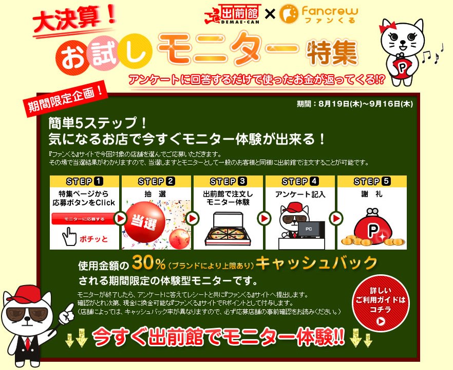 【出前館】年間人気特集ランキング ! 『安い』『体験型モニターサービス』が人気