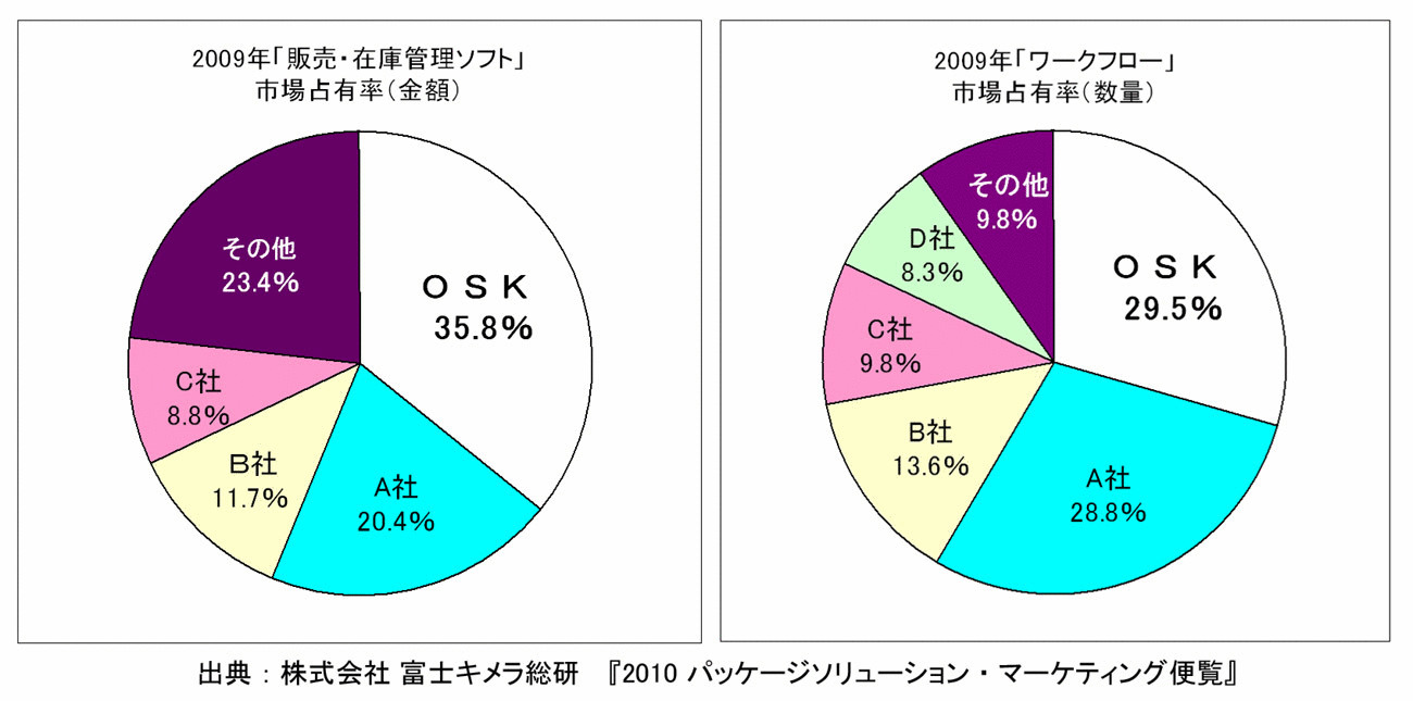 ソフトウェア開発の株式会社OSKは、株式会社富士キメラ総研が本年5月18日に発刊した『2010パッケージソリューション・マーケティング便覧』掲載の調査結果において、2製品で3年連続シェア1位となりました。