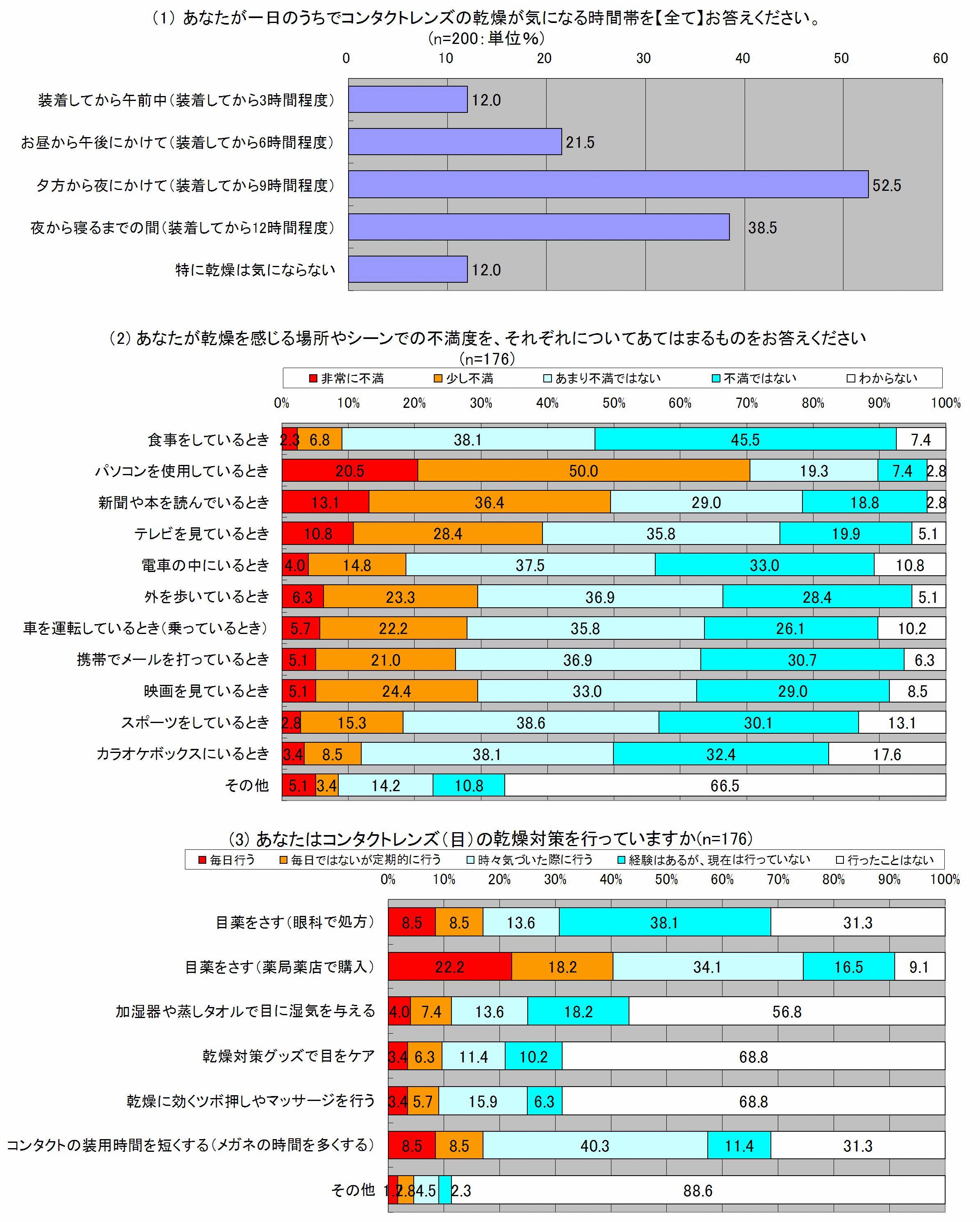 1日使い捨てコンタクトユーザーの9割がレンズ装用中に乾燥を感じている。うち定期的に乾燥対策をしているのはわずか4割。