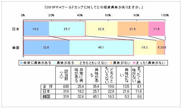 アジア地域におけるオンライン調査パネルの提供事業を展開するリサーチパネルエイジアは、日韓で「2010FIFAワールドカップに対する意識調査」を実施した。日韓国民の本大会に対する認知度や興味、関心、自国チームへの期待度などについて調査。