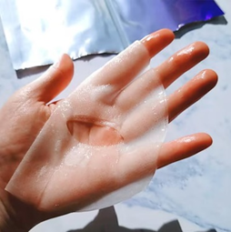 ふき取りタイプのアンプルシート、目元と額をケアする上層シート、口元から