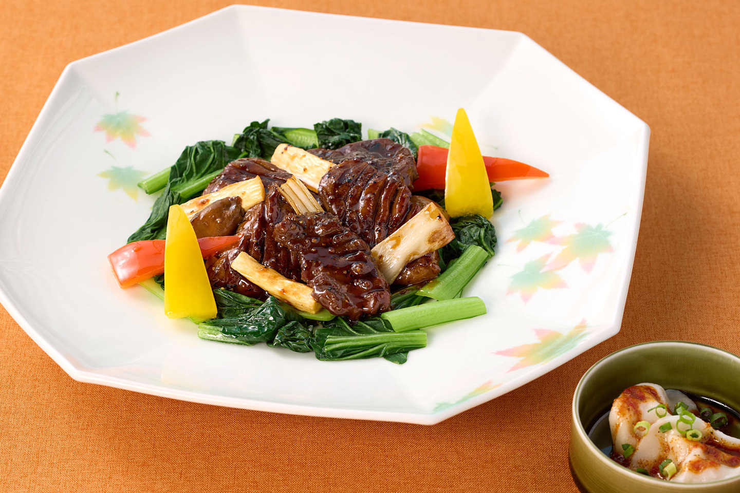 11月は、香辛料のスパイシーさが人気の四川料理から「牛タンの四川風 黒胡椒炒め」をご用意。噛むほどに旨みが広がる牛タンと彩り豊かな野菜を炒め、甘辛いソースにピリッと黒胡椒を効かせた、食欲をそそる逸品です。