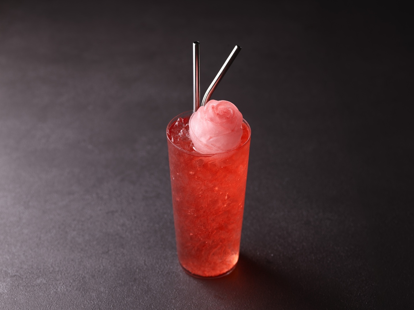 ウェスティンホテル横浜オリジナルフレーバーティー「ホワイトローズ」のエッセンスとピーチシロップが甘く香るPink Ribbon Auroraは、可愛らしいピンクのラメが揺れ動く、爽やかなソーダ仕立てのモクテル。