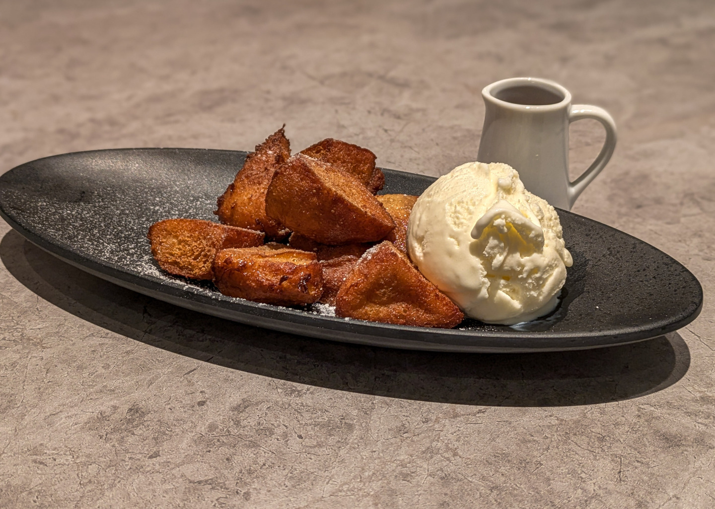 ハンバーガーと同じ無添加・全粒粉バンズを使った、BRISKSTANDならではのフレンチトーストです。一般的な「ふわとろ」食感とは異なり、表面はこんがりと香ばしく、中はもっちりとしたサクサク系の食感に仕上げています。全粒粉ならではの豊かな風味と、素材を活かした優しい甘さが口に広がります。
