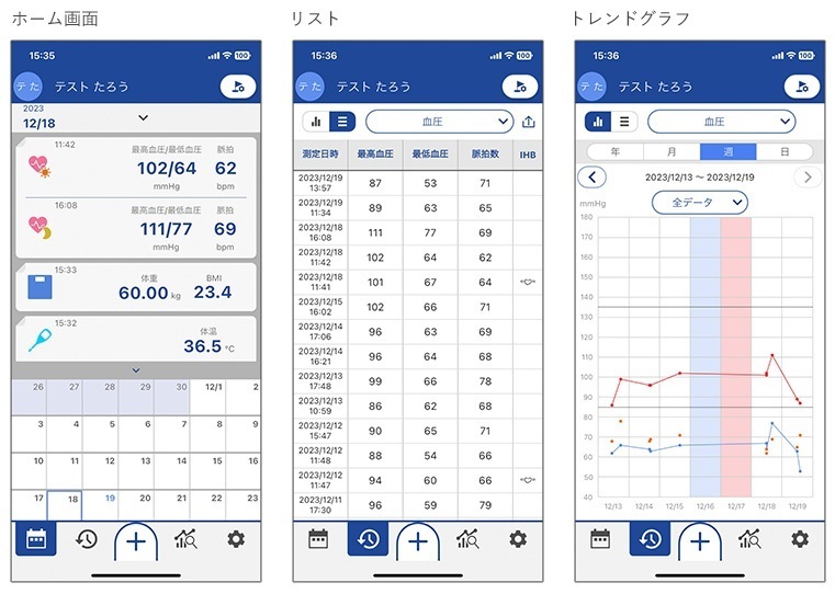● Bluetooth通信で専用アプリ「A&D Connect ヘルスケア」にデータを転送し、記録・管理が可能