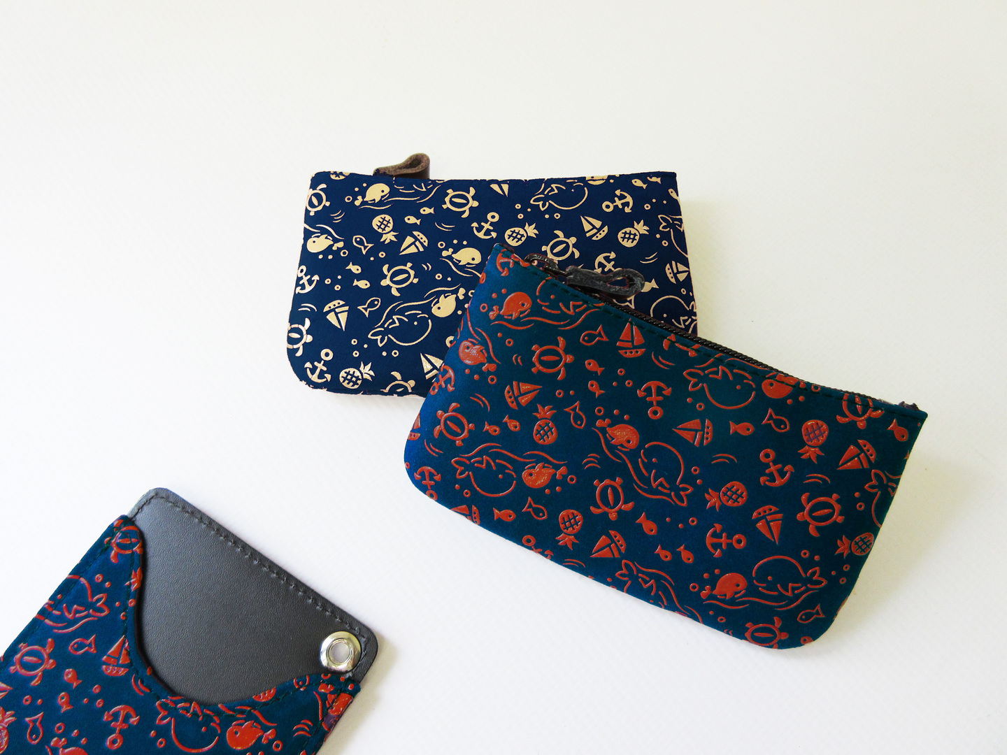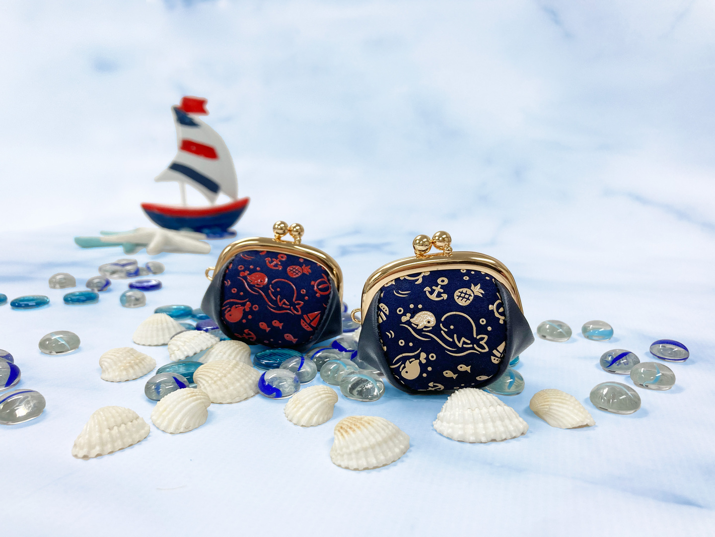 クジラの親子が描かれたオリジナルの人気柄に、本POPUPショップ限定配色(紺革×赤漆)の商品が登場。