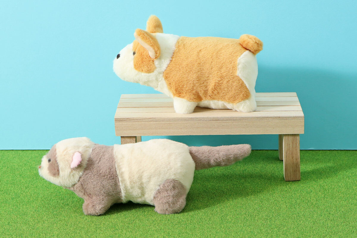 「ショートレッグぽちゃ」は、ころんとしたフォルムがたまらなく愛らしいぬいぐるみ。その名の通り、短くてちょこんとした足がチャームポイントで、“守ってあげたい”と感じてしまうような、なんともいえない愛くるしさが魅力です。お部屋にちょこんと置くだけで癒しの存在になってくれるはず! ラインナップは、人気のダックス、コーギー、マンチカン、フェレットの4種類。それぞれの動物らしさを丁寧に表現しており、つい集めたくなるぬいぐるみです。