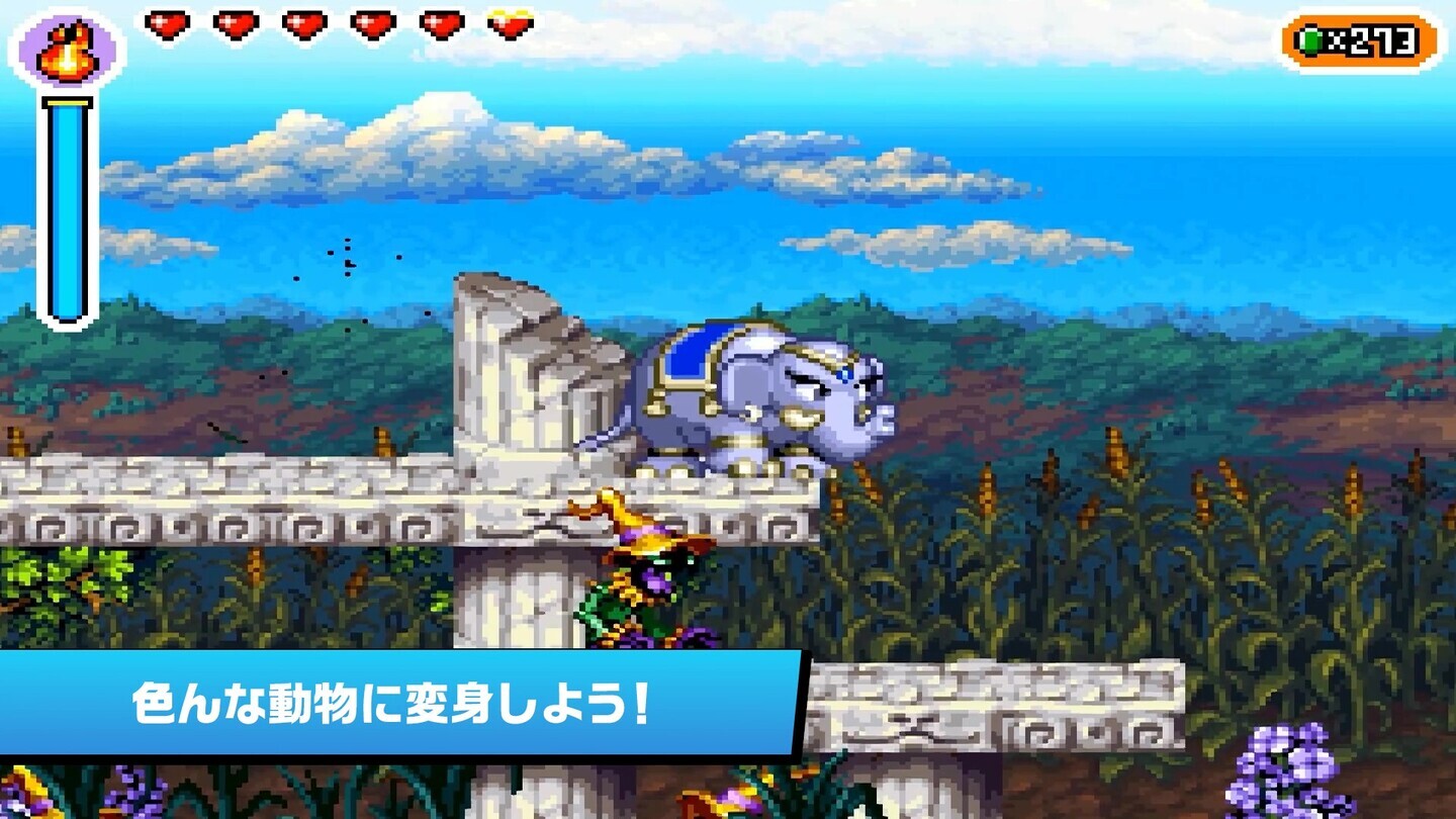 本作は魔法のランプの封印を巡りライバルの女海賊「リスキィ・ブーツ」とハーフジーニーの可愛い女の子「シャンティ」が対峙します。新しく覚えた変身ダンスで、探索範囲を段々と広げていき、リスキィ・ブーツの悪事を阻止しよう!