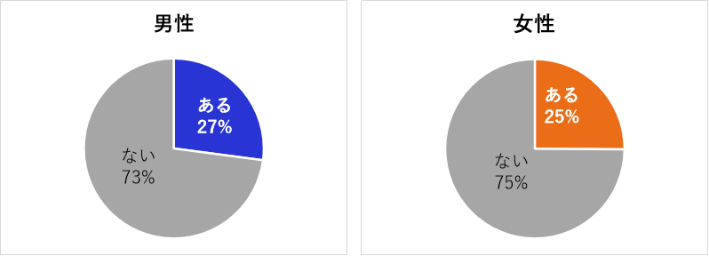 性別で見ると、男性25%、女性28%と、女性のほうがやや多い結果となりました。