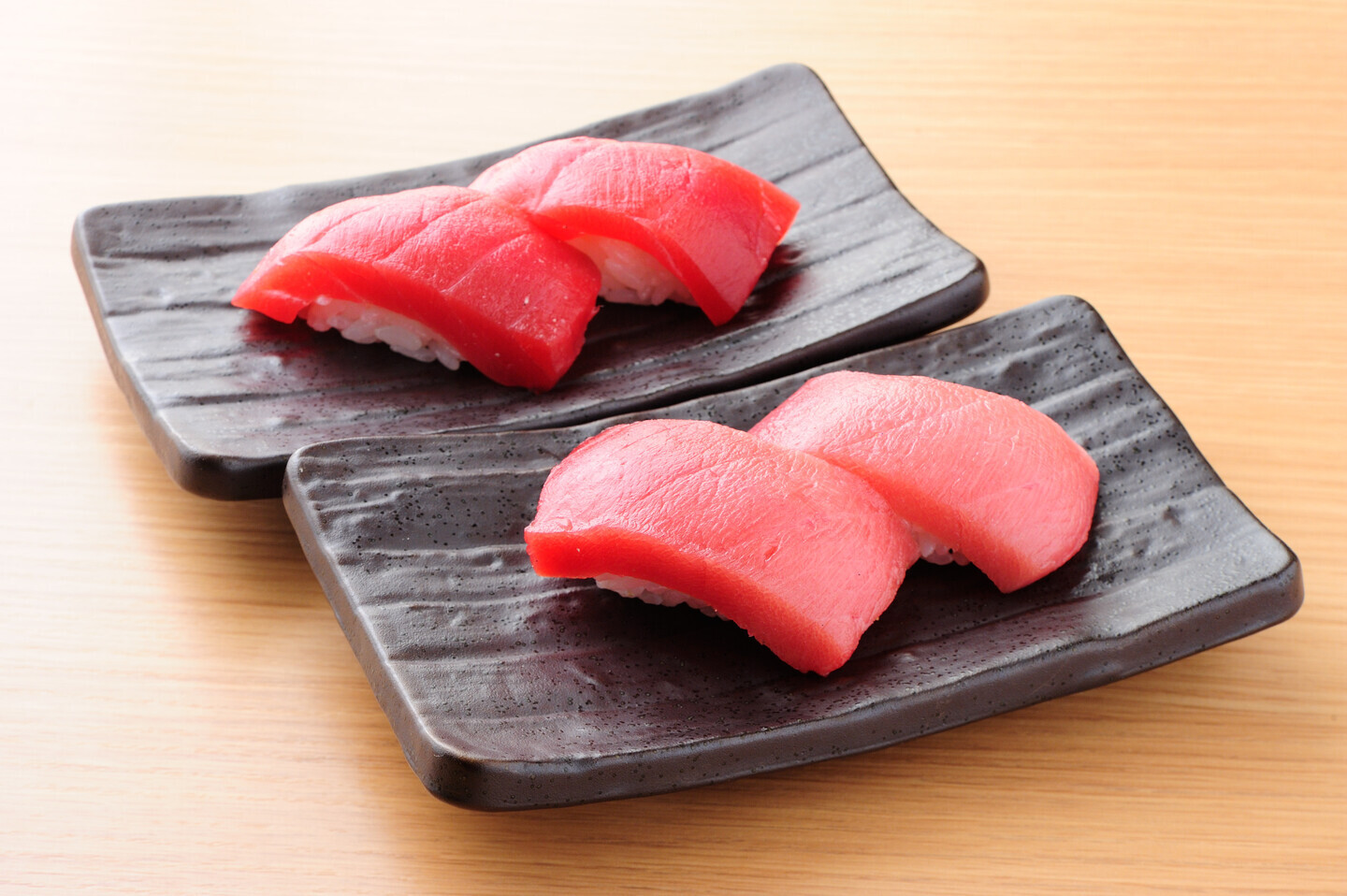 販売再開にあたっては熟成用の専用冷蔵庫を増設、より安定した品質管理体制を整備。熟成期間や魚種の組み合わせも見直し、季節や仕入れ状況に応じて最もおいしい状態で提供できるよう改良を行いました。また提供スタイルにも一工夫を加え、単品のほか熟成生本まぐろ&生本まぐろ、熟成たい&たい、熟成かんぱち&かんぱちの「熟成寿司食べ比べ6貫」としても楽しめるようになっています。熟成寿司はランチタイム、ディナータイムと時間帯を問わず提供します。