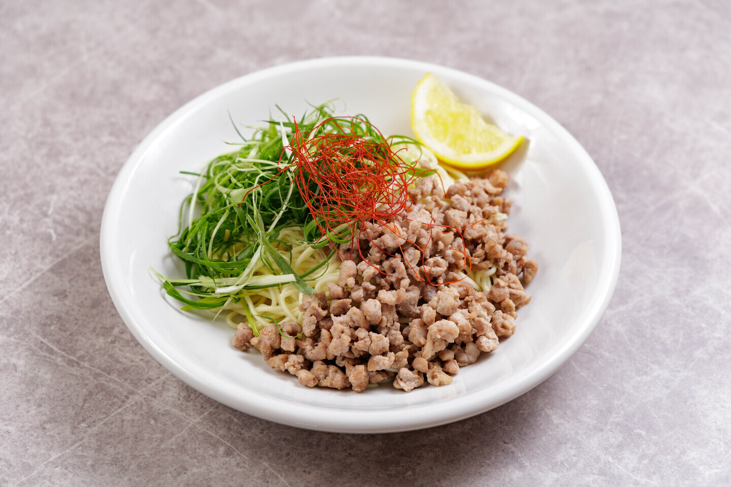広島のご当地グルメの一つ「汁なし担々麺」もございます。 花椒とごまの風味の風味を効かせました。 お好きな温度でお召し上がりいただけるよう、温・冷2種類ご用意いたしました。