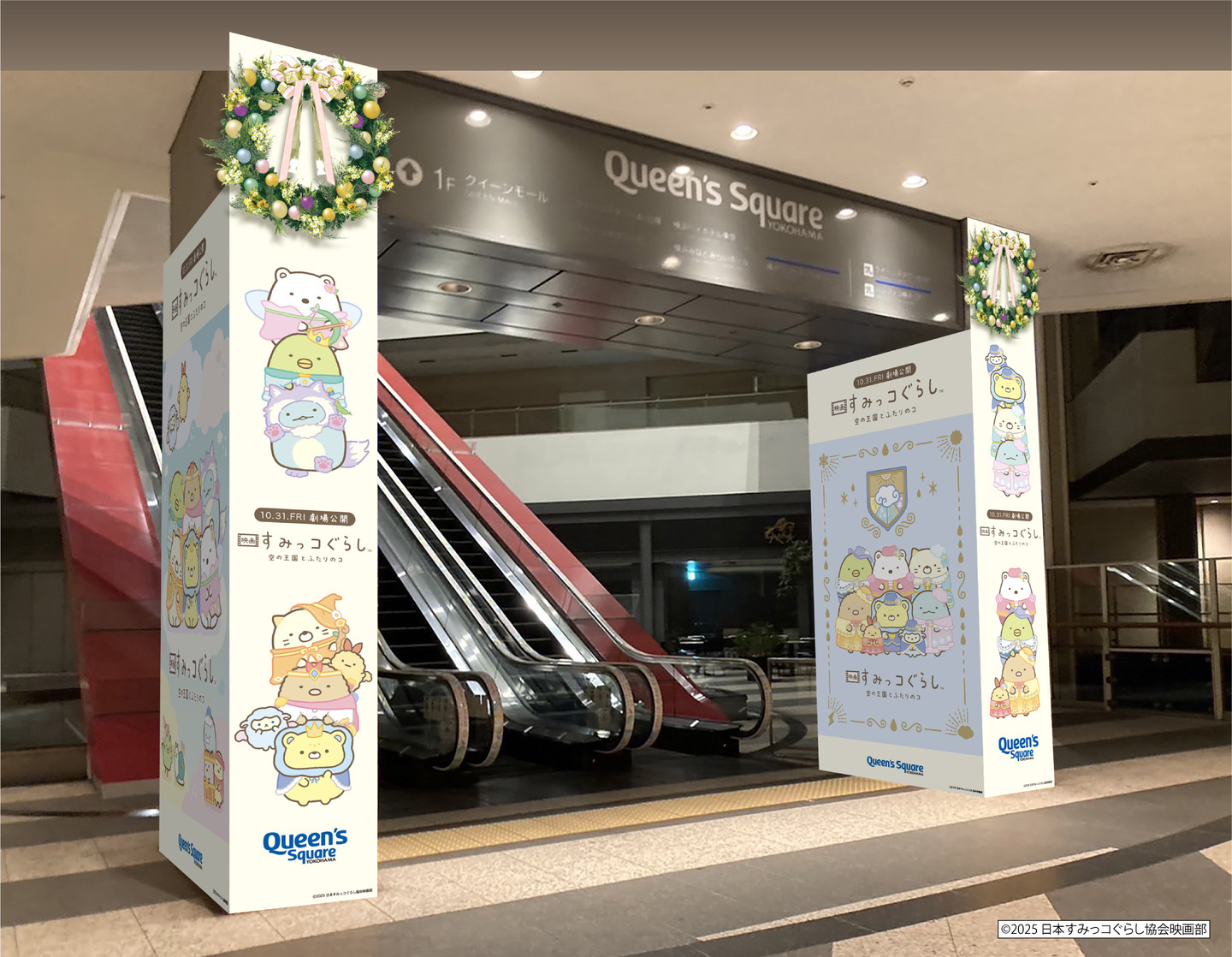 2025年10月31日(金)公開の『映画 すみっコぐらし 空の王国とふたりのコ』とコラボレーションし、映画の世界観を表現した「クイーンズスクエア横浜2025年クリスマス」限定のスペシャルデザインが登場します。