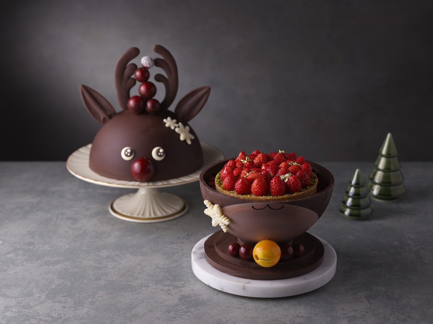 リンツチョコレートでできた大きなトナカイの中に、苺のタルトが隠れている、遊び心あふれるスペシャルデコレーションケーキ。クリスマスの食卓の主役になること間違いなしのインパクトフルなケーキは7個限定です。