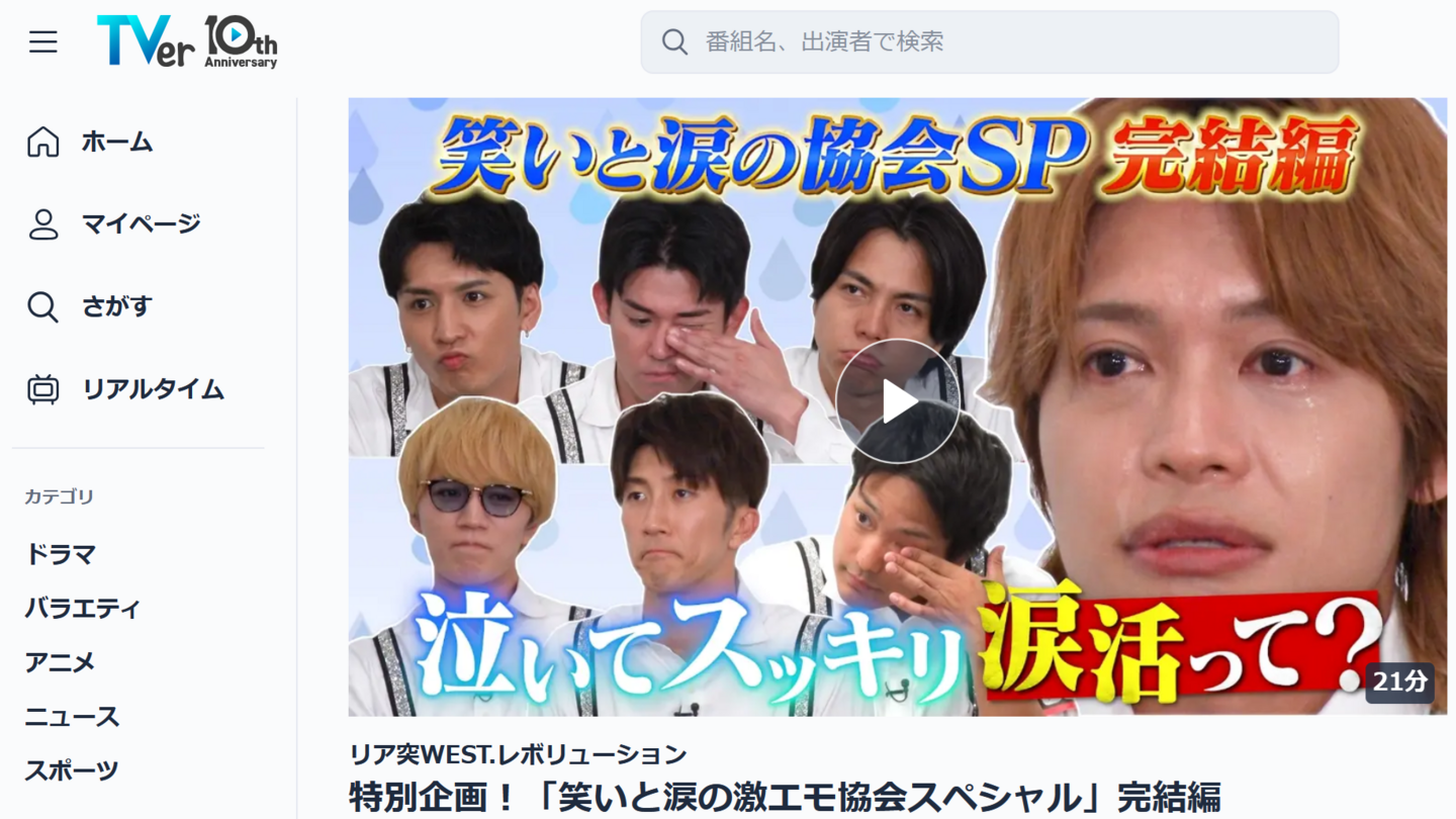 WEST.の7人にいろんな手段を使って泣かせる企画。