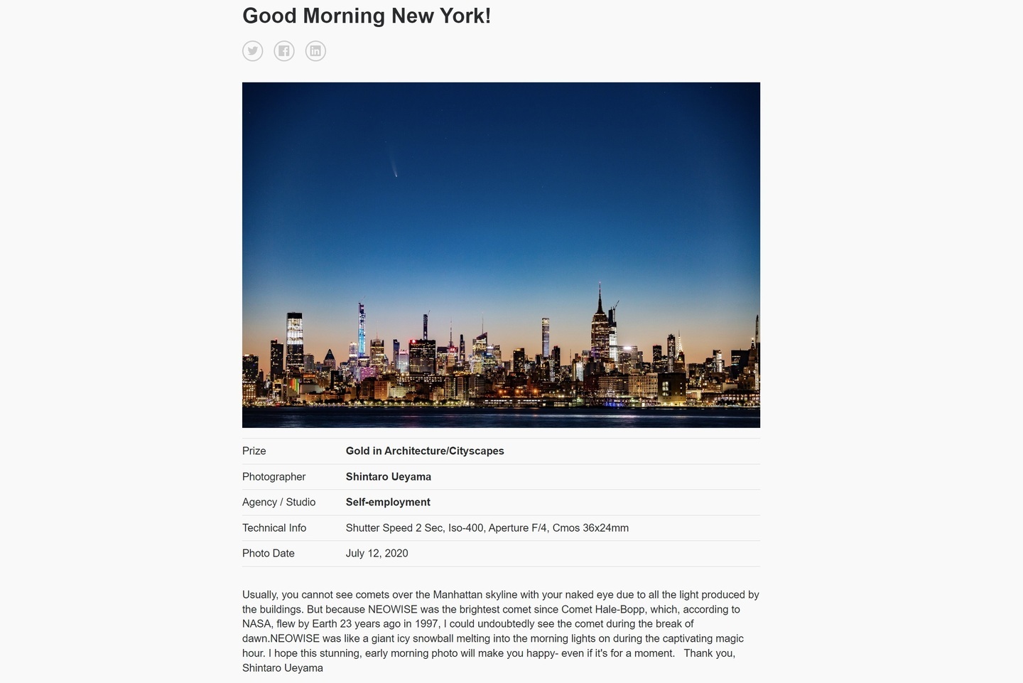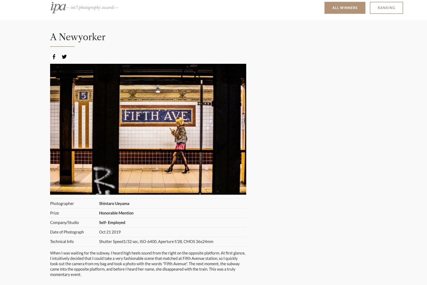 また、様々な国際写真コンテストにて5年連続入賞、Gold賞・Bronze賞獲得も。