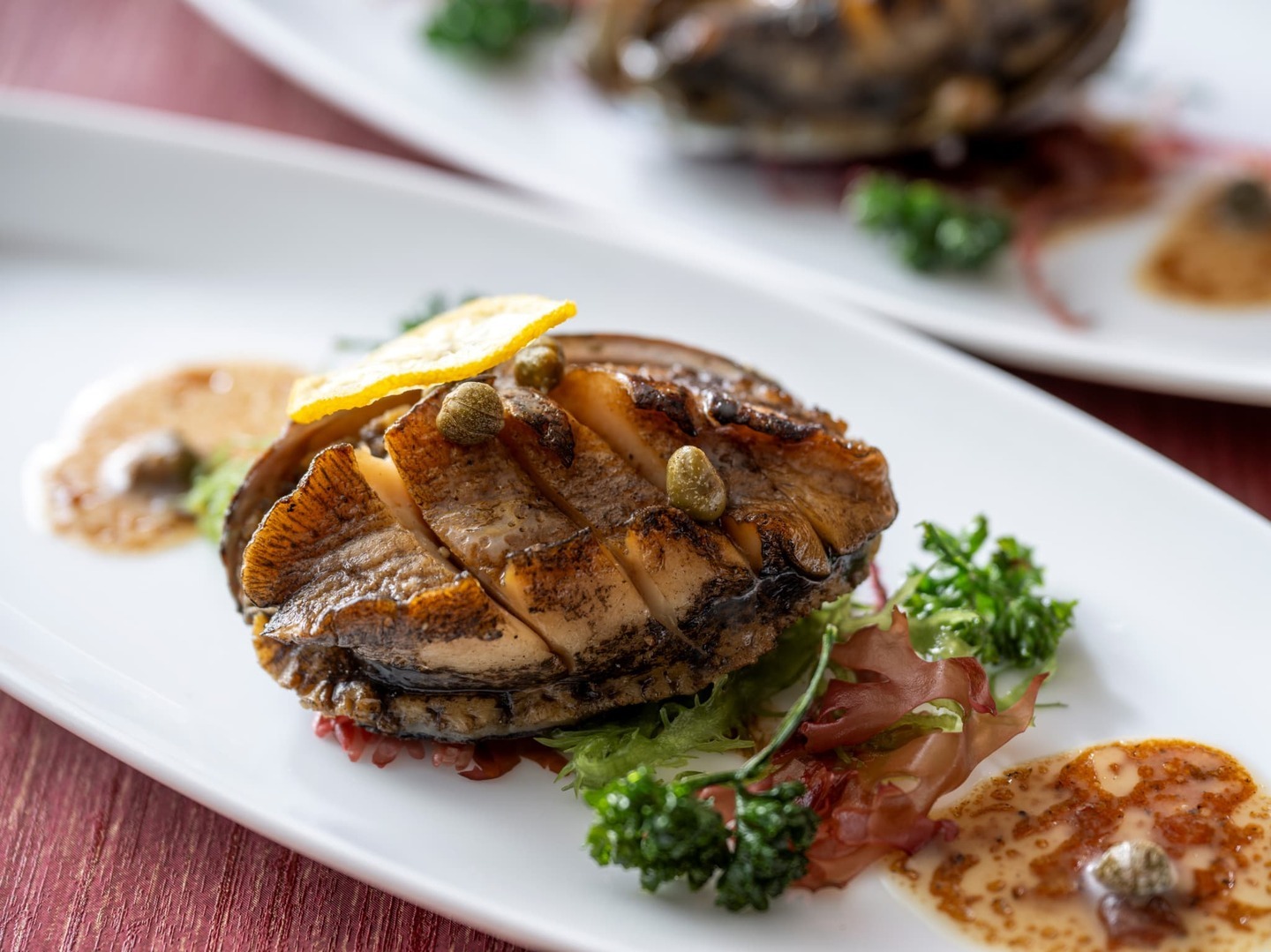 ・殻付き蝦夷あわびのムニエル 広島レモンが香るブールノワゼット