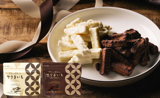 従来品より1.5倍のチョコレートコーティングを施し、さらに濃厚で満足感のある味わいに改良した『サクまいも プレミアム(メルティショコラ仕立て)』も同時発売。芋けんぴの自然な甘さとチョコのコクが絶妙に調和し、ギフトにもピッタリです。
