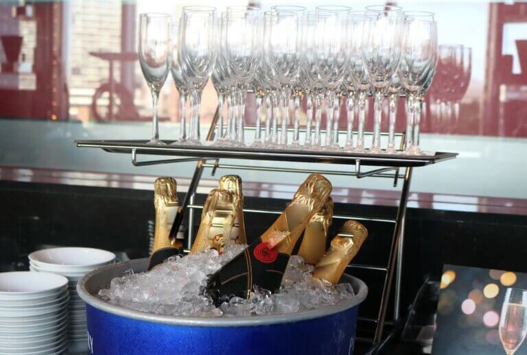 ビュッフェコーナーには、シャンパンのフリーフローをご用意。グラスを片手に、華やかなひとときをお楽しみいただけます。