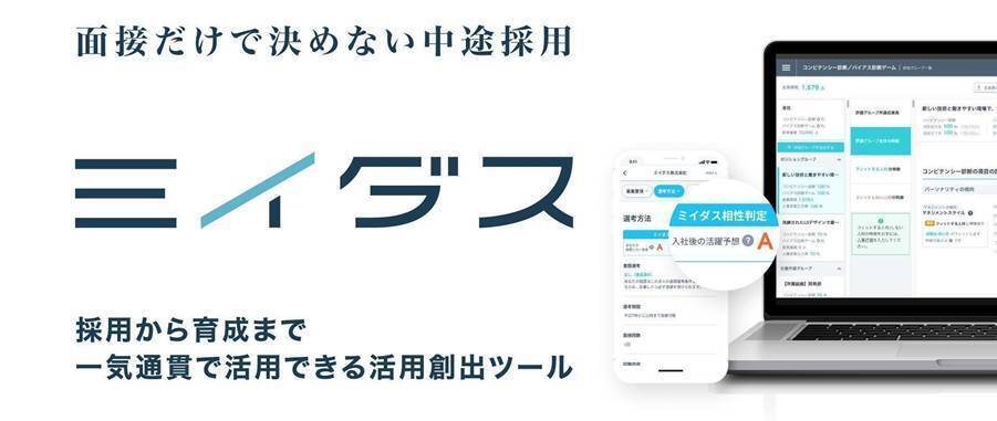 『ミイダス』は、世界初※の採用・転職におけるミスマッチを減らしながら入社後の活躍をサポートする採用・転職サービスです。