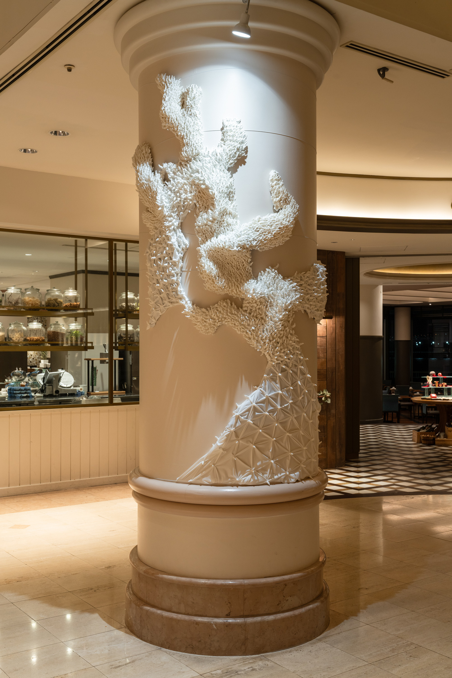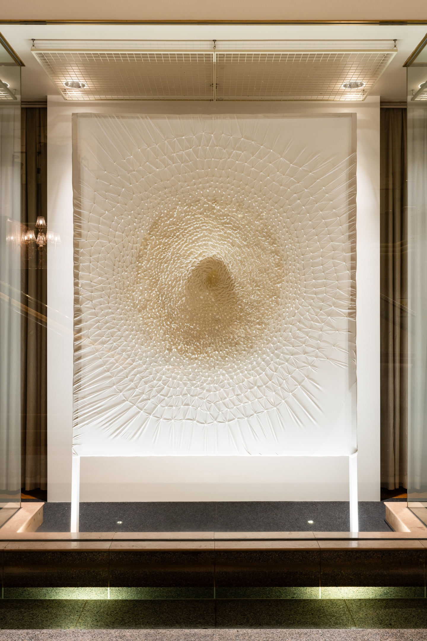 今回は現代アーティスト・松本千里氏による大規模インスタレーション「Drifting between the Waves 波間に揺蕩(たゆた)う」が、ホテル1階ロビーにて展示されています。