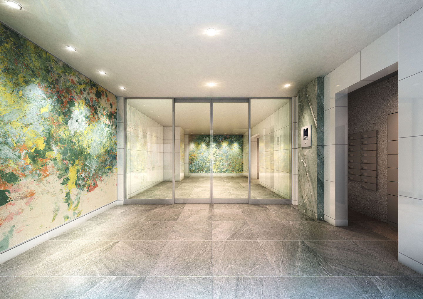 先進的なデザインの外観は、都会的で洗練された印象を与えます。縦に伸びるストライプや奥行きのあるバルコニーが、シャープでスタイリッシュな表情を演出。自然の温かみを感じさせるエントランスホールは、アートを眺めながら優雅なひとときを過ごせる、安らぎの空間を創造します。