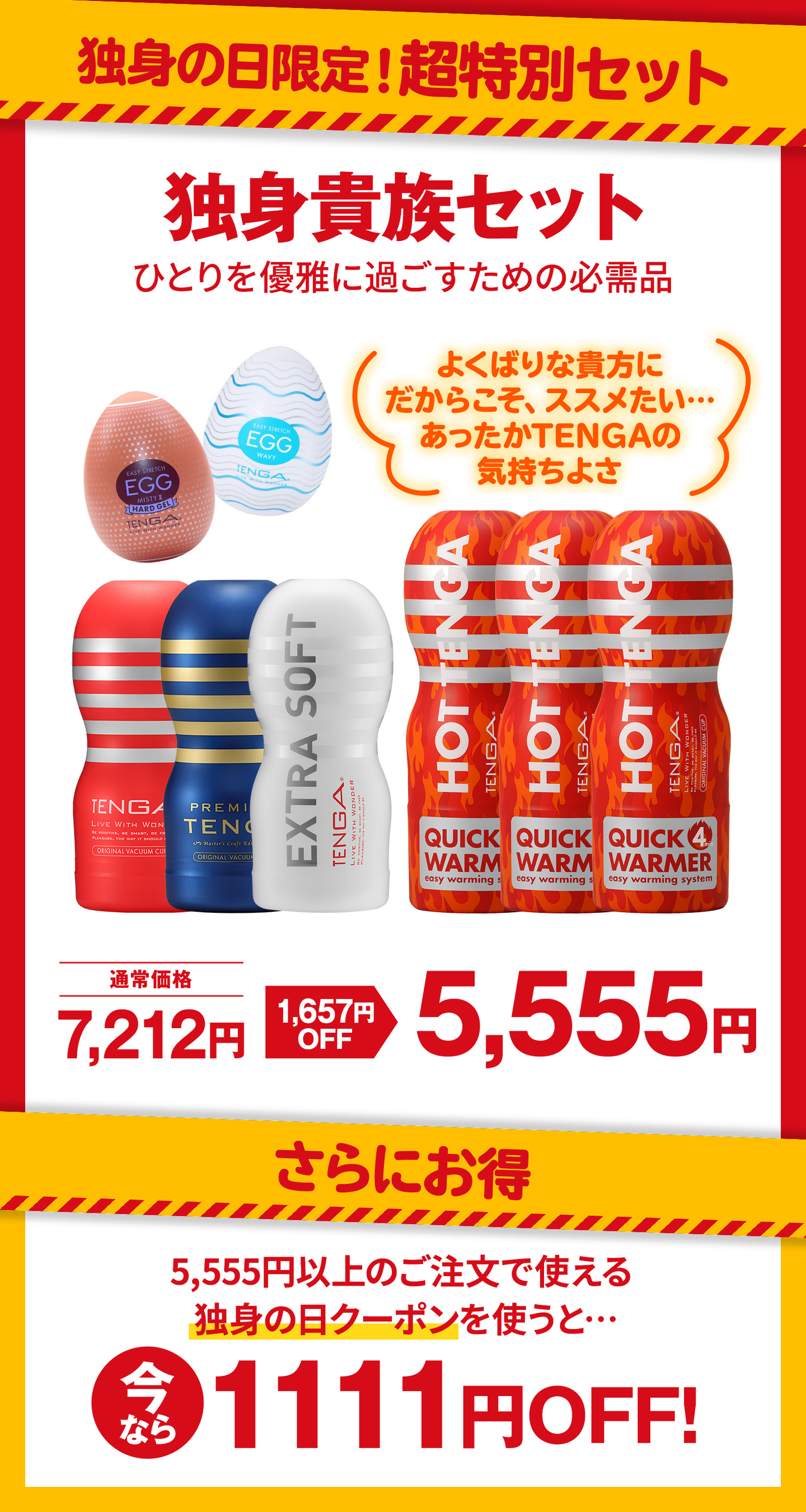 前年比145%成長を記録した恒例キャンペーンがパワーアップして登場 TENGA「独身の日 1,111円引きクーポンキャンペーン」を史上最長6日間開催