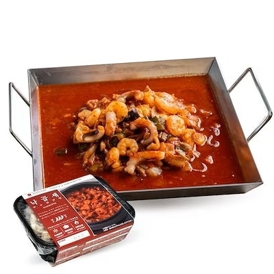 釜山の名物料理ナッコプセ。テナガダコ、牛モツ、エビが入った甘辛い鍋料理。