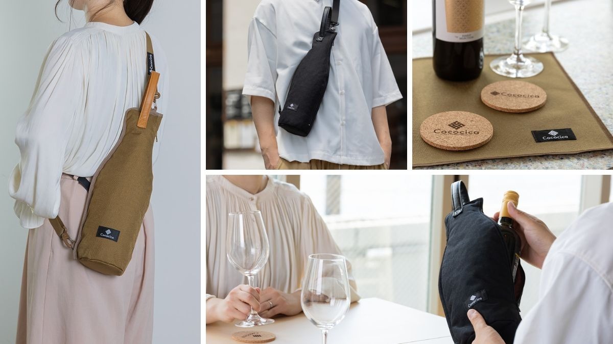 バッグ底部には再生コルク製コースターを内蔵し、ワインを衝撃から守りつつ、そのまま置ける利便性も兼ね備えています。