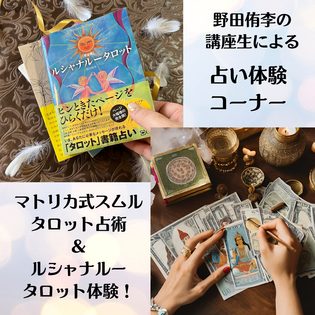 セミナー前後に1対1のオンライン占い15分を受けられます(午前11時30分〜午後1時、午後4時15分〜午後5時30分)。