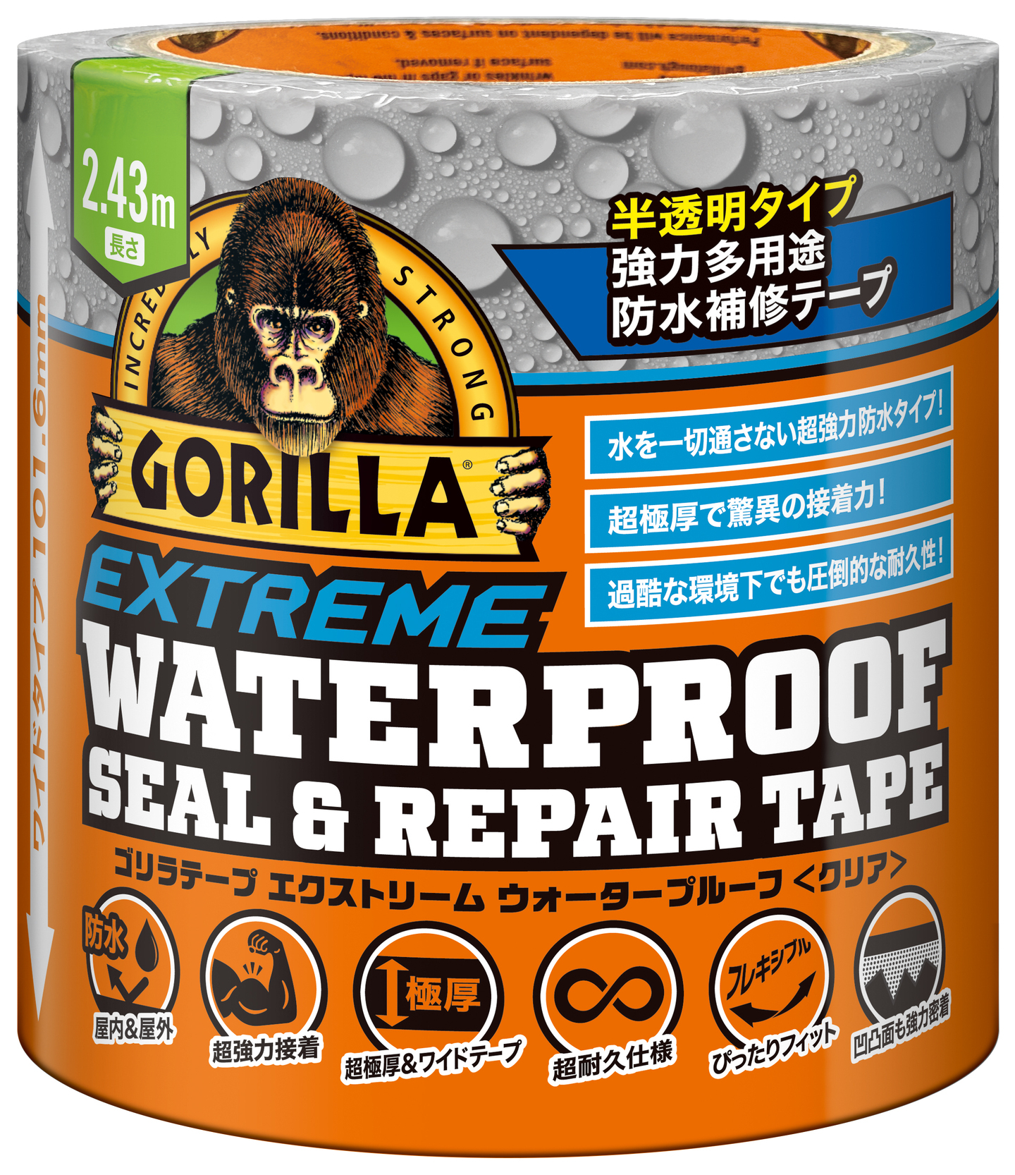 ゴリラシリーズから超極厚接着&超耐久仕様で補修箇所が目立たない半透明タイプの「ゴリラテープ エクストリーム ウォータープルーフ <クリア>」が新発売!