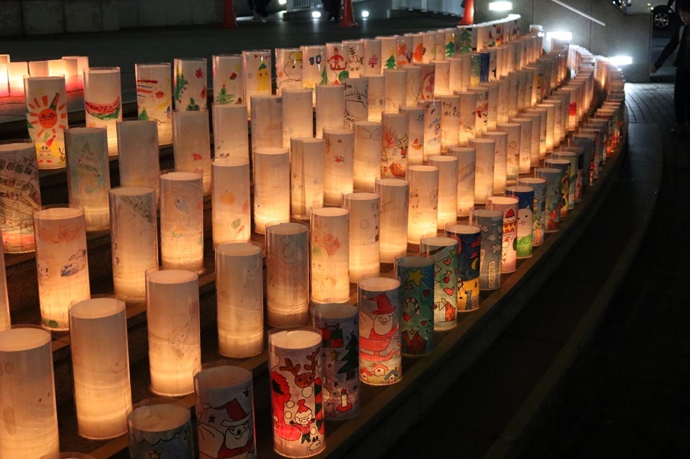 地元小学生のメッセージキャンドルや、