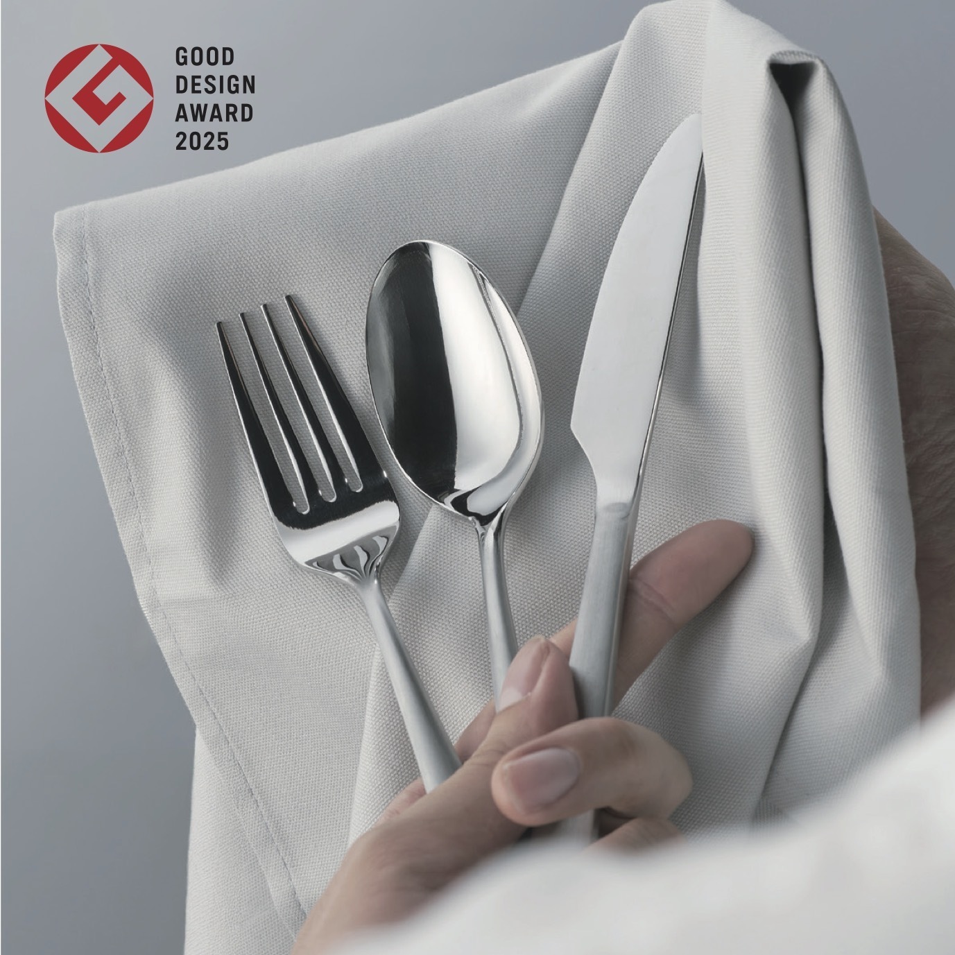 燕物産のカトラリーシリーズ【Stilla】が2025年度グッドデザイン賞を受賞。次の100年の新たなスタンダードを目指し、日本人の口に合うサイズと形状を追求。
