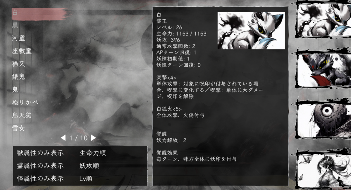 主人公は、陰陽術を失った女陰陽師「晴(セイ)」。失われた陰陽術を取り戻すべく、100種類の個性豊かな妖怪の中から最強軍団を編成します。妖怪は、属性・スキル・合技ともさまざま。編成を考える段階から深い戦略性が求められ、100体もの妖怪の組み合わせを試行錯誤する楽しさを味わうことができます。