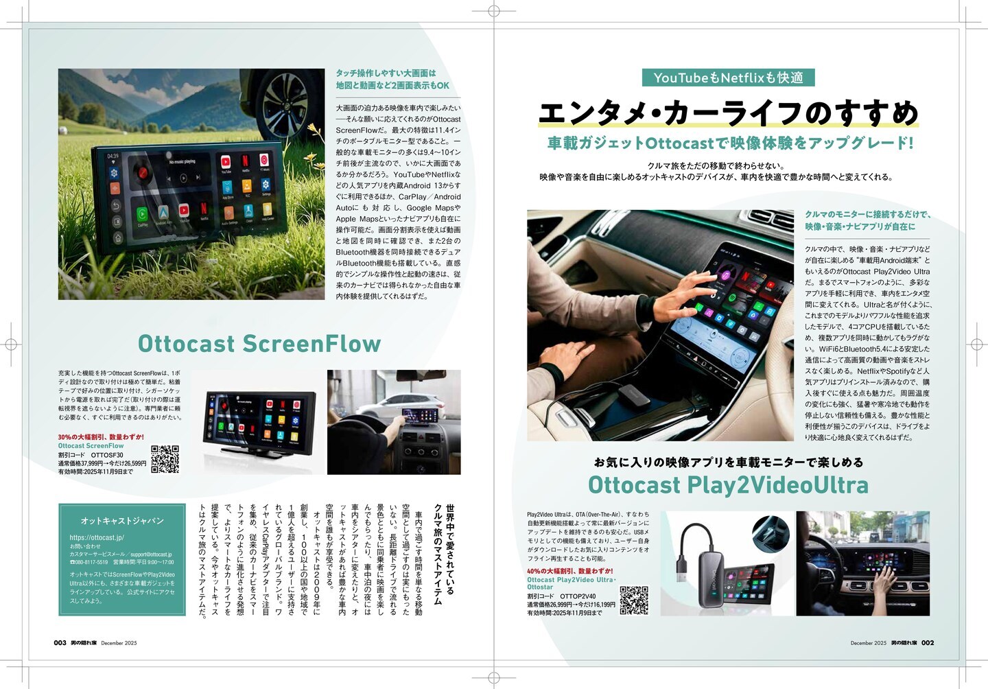 Ottocast の製品は、2025年冬号の複数の主要雑誌に取り上げられ、車載デバイス市場における注目度がさらに向上しています。