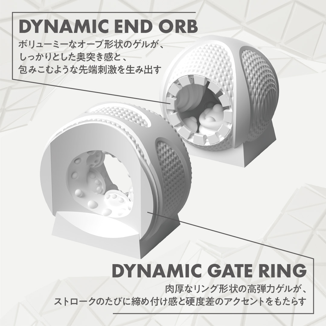 本製品は軟質素材と硬質素材を合わせた新開発の特殊マテリアル『フレキシブルシェル』により、押さえる場所や力のかけ方により、自由自在に刺激をコントロールできます。また、オーブ形状、リング形状の硬度の異なる高弾力ゲルを一体成形した新技術『ダイナミックインサート』を搭載。FLIP史上最大のゲル量による肉厚ディテールで包み込まれるような刺激をお楽しみいただけます。