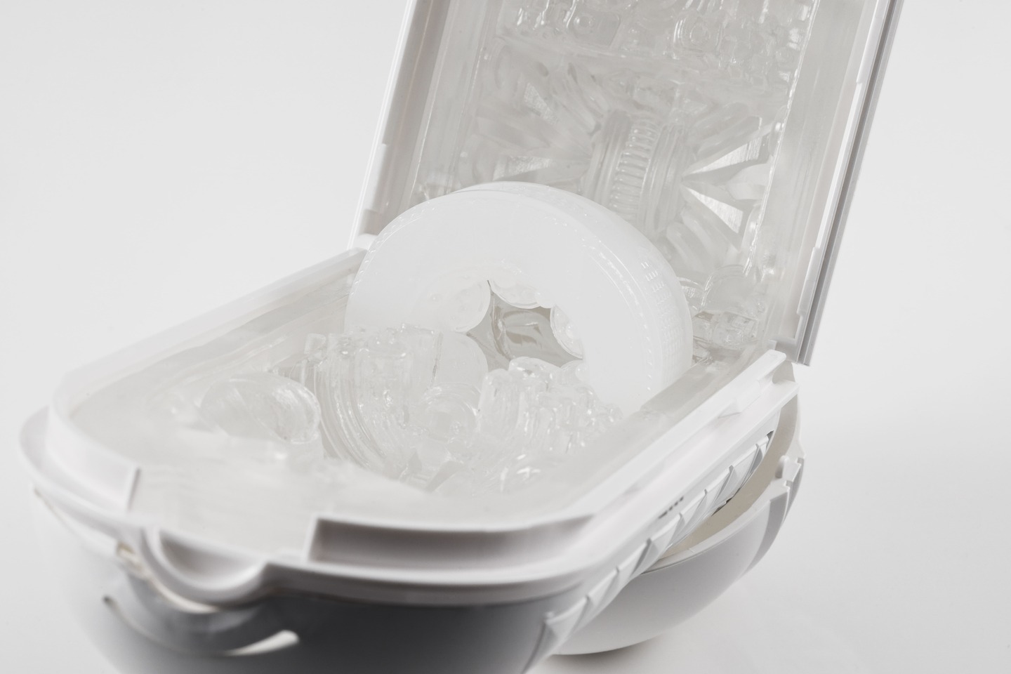 本体の透明ゲルと硬度が異なる、オーブ形状とリング形状の高弾力ゲルを搭載。オーブ形状のゲルはしっかりとした奥付き感と、包み込むような先端刺激を生み出し、リング形状の肉厚なゲルは、ストロークのたびに締め付け感と高度差のアクセントを生み出します。