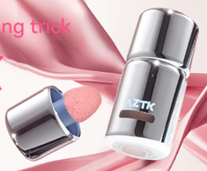 肌にのせるとパウダー状に変化するリキッドチーク