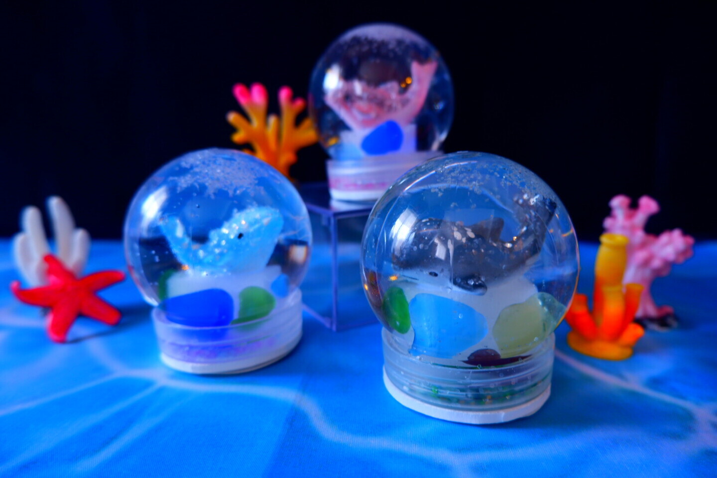 再生ガラスから生まれた“ルーピース”を使って、光るスノードームを作るワークショップ。