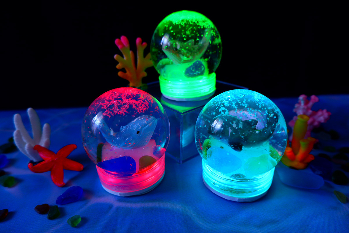 廃棄ガラス瓶をアップサイクルした再生ガラス「ルーピース」とLEDを使って、自分だけの“光るスノードーム”を制作。