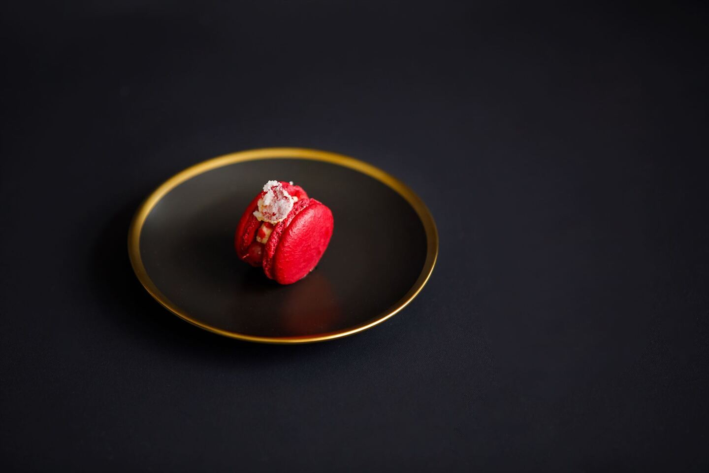 華やかなバラの香りをまとったクリームに、ライチのコンポートを忍ばせ、ラズベリーとともに味わう繊細なマカロン。香りのレイヤーが口の中でゆっくりと広がり、余韻まで楽しめる設計となっています。
