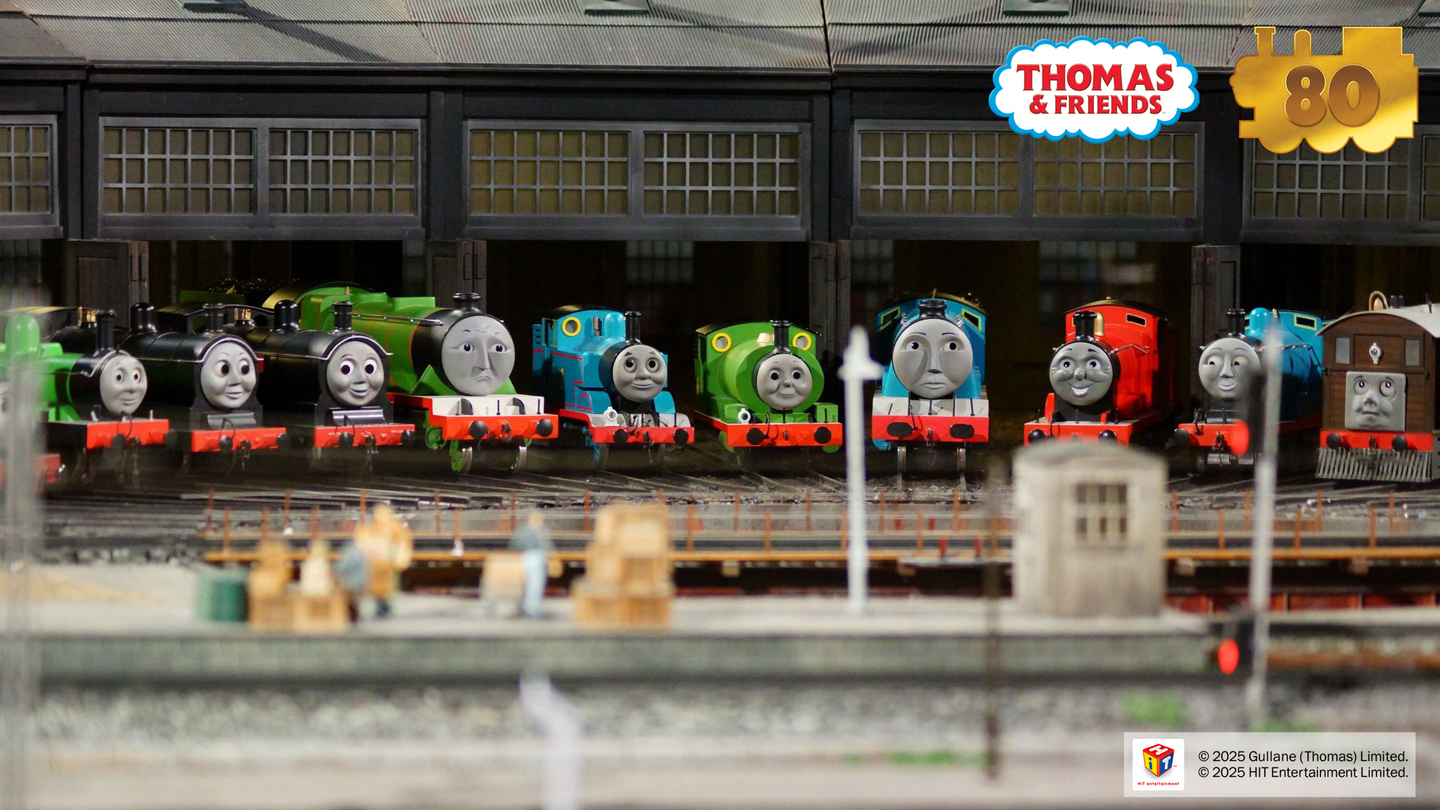 イギリスのTVアニメ(1984年〜放送)で実際に使用された一番ゲージ鉄道模型のトーマスたちが大集合。
