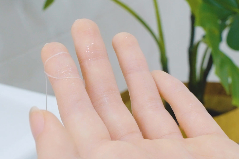 2.フロスの薄い厚さと丈夫さで 歯間の異物除去