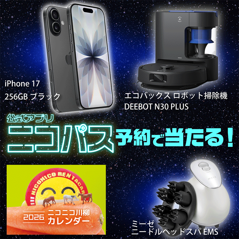 2025年もありがとうございます!公式アプリ「ニコパス」でiPhone17など豪華景品が抽選で当たる「ニコニコ笑顔でカウントダウン!キャンペーン」開催中!
