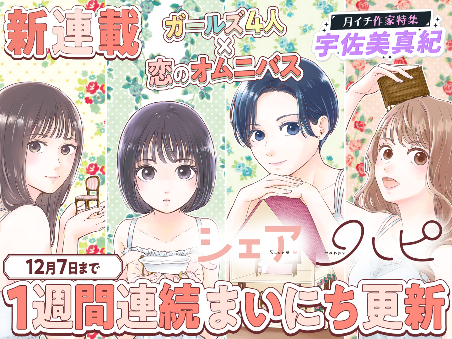 ベツコミ人気作家・宇佐美真紀特集!新作『シェアハピ』&名作大量無料!12/24限定『ココロ・ボタン』無料解放も|フラコミlike!