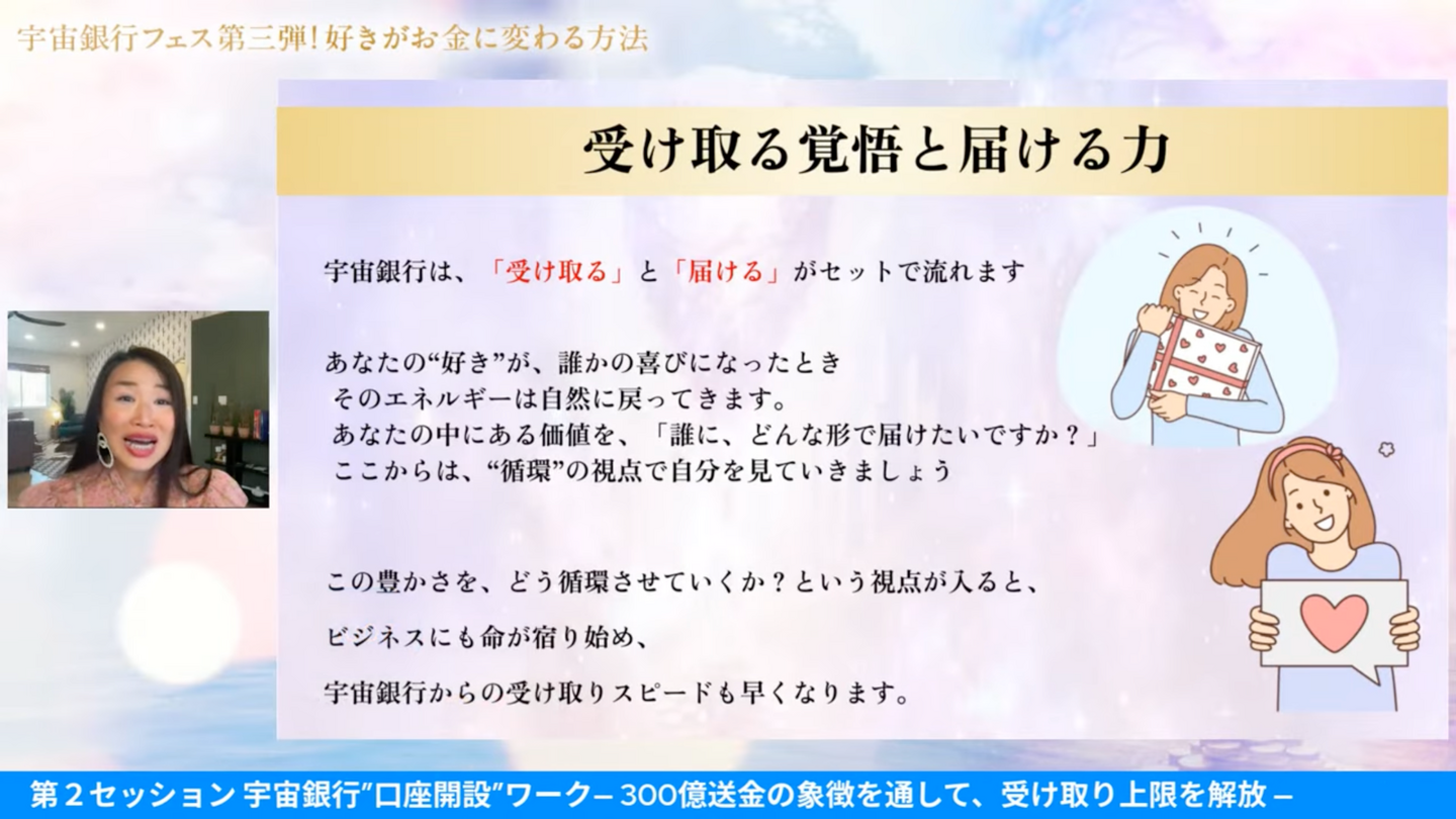 セミナーおよび各種講座の企画・開催、企業研修、コンサルティングなどを手掛ける株式会社ブリッジインターナショナル(本社:東京都港区、代表取締役・小熊弥生)は、2025年11月23日にオンラインイベント「宇宙銀行フェス第三弾! 好きがお金に変わる方法」を開催しました。当日のライブは約650名が参加、動画再生回数は5,000回を超えました(2025年12月1日現在)。