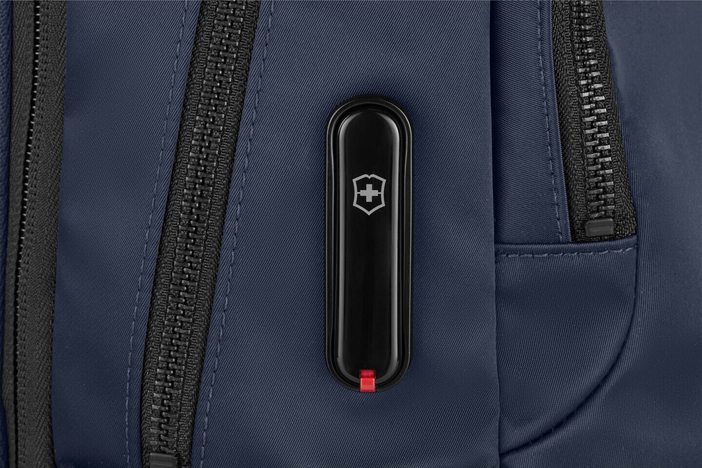 ビクトリノックスブランドをさらに強調するのが内装の裏地。「ブラック」モデルはビクトリノックスのシグネチャー“レッド”ですが、新色の「オーシャンブルー」には、レッドがさりげないアクセントになった“グレー”の裏地をメインに施しました。この裏地は、抗菌生地のSILVADUR素材を採用しています。