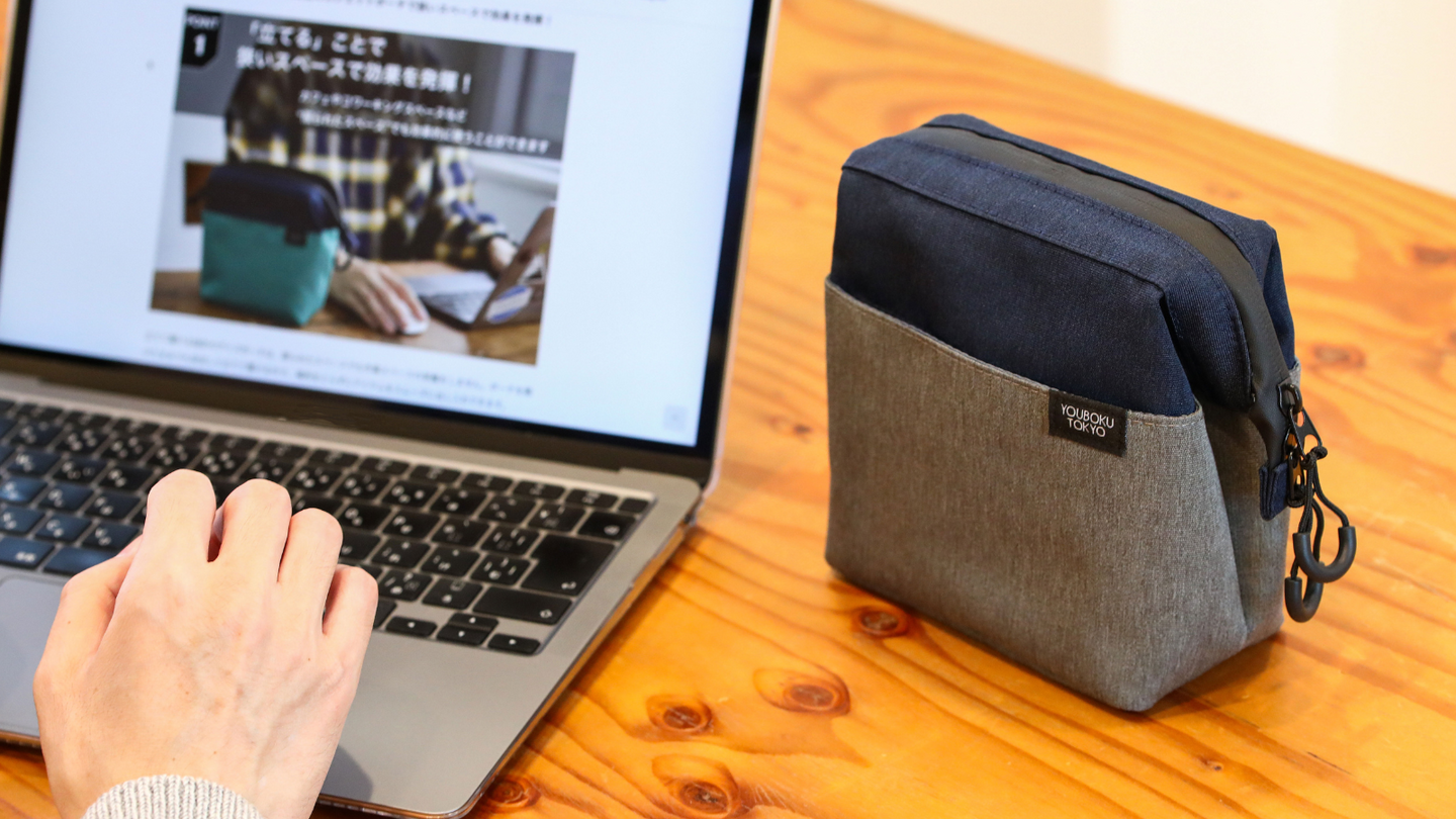 テーブルの上に立てて置ける、自立する整理収納ポーチ。ユウボク東京「デイズポーチ」(カフェ・カラー)