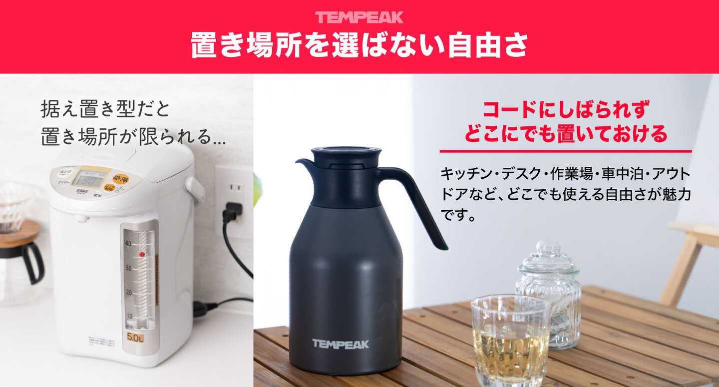 電気いらずで10時間83℃を実現。“国内最強レベル”の保温力『TEMPEAK(テンピーク)超保温卓上ポット』誕生